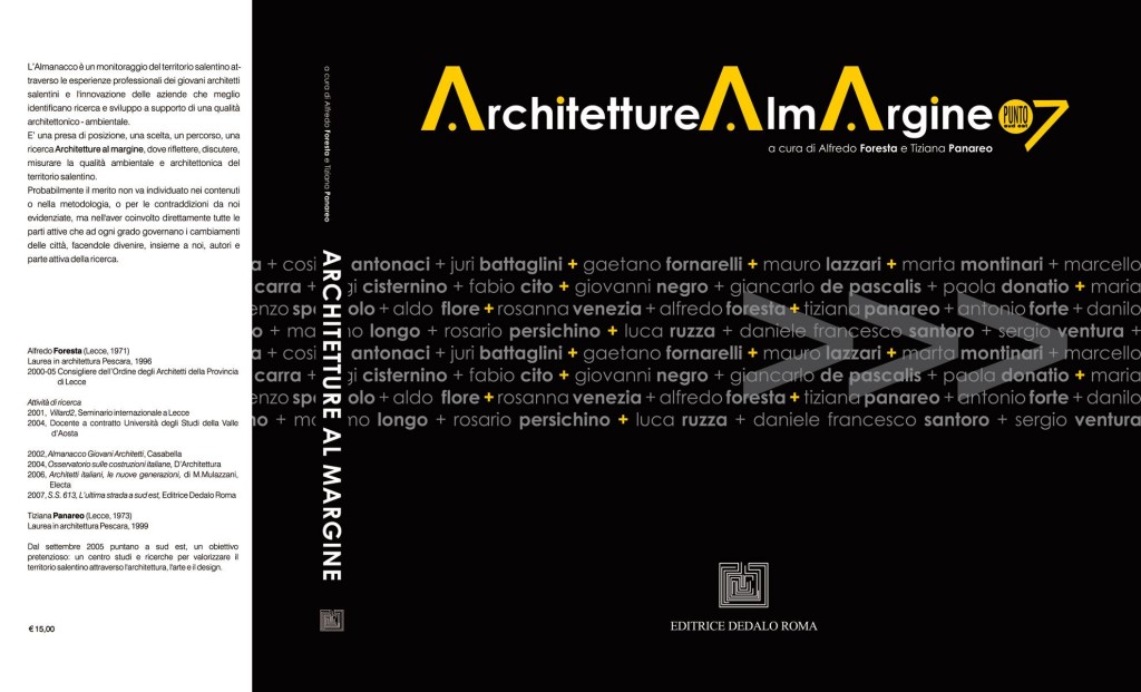 ALMANACCO ARCHITETTURE AL MARGINE ’07, di A. Foresta e T. Panareo, introduzione di A. Ferlenga, M. Guccione e M. Mulazzani, editrice Dedalo Roma